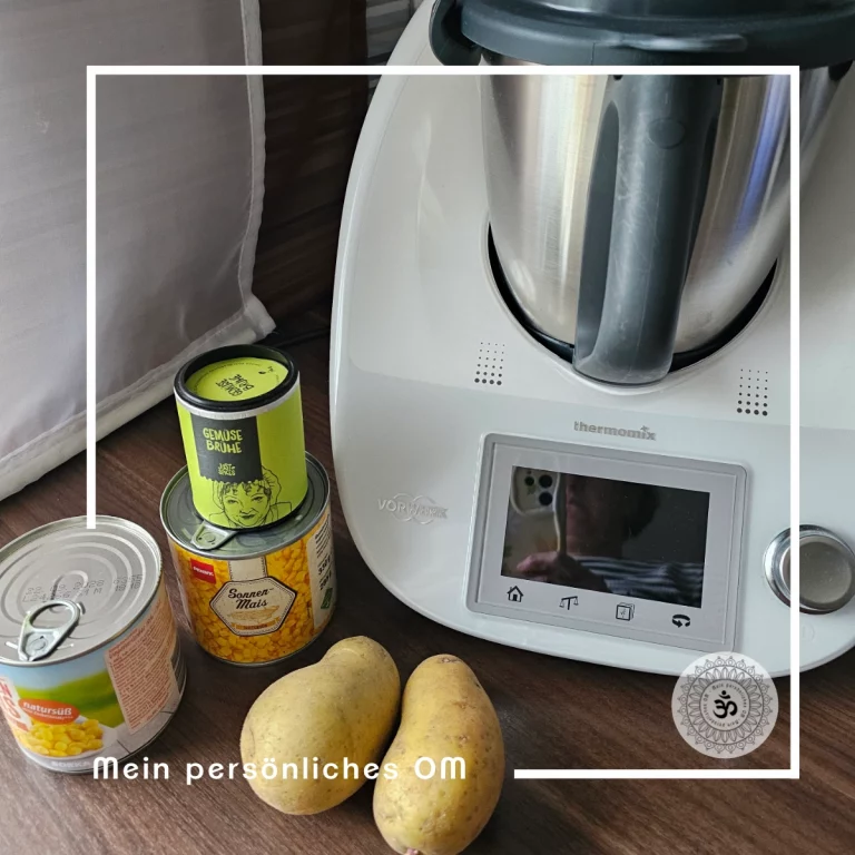 Und darauf jetzt eine entspannte Schale Mais-Kartoffelcreme-Suppe – guten Appetit! 🥣✨
